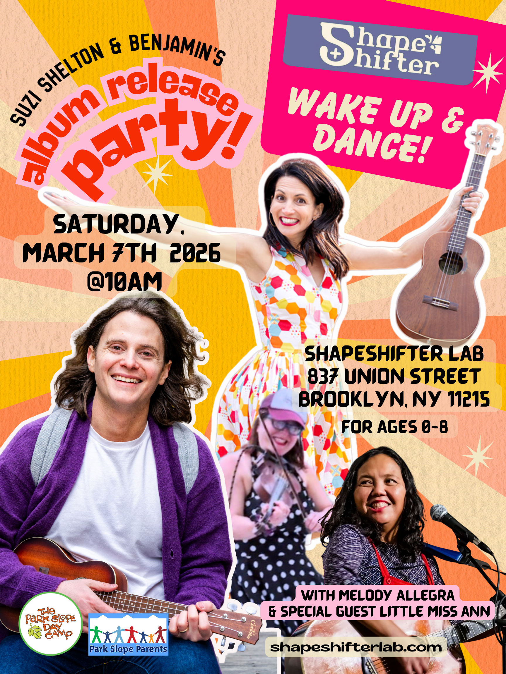 Families, get ready to sing, dance, and celebrate friendship! Join us for a joyful Wake Up & Dance Concert celebrating the release of Suzi Shelton & Benjamin’s brand-new album, We’re Friends Now.